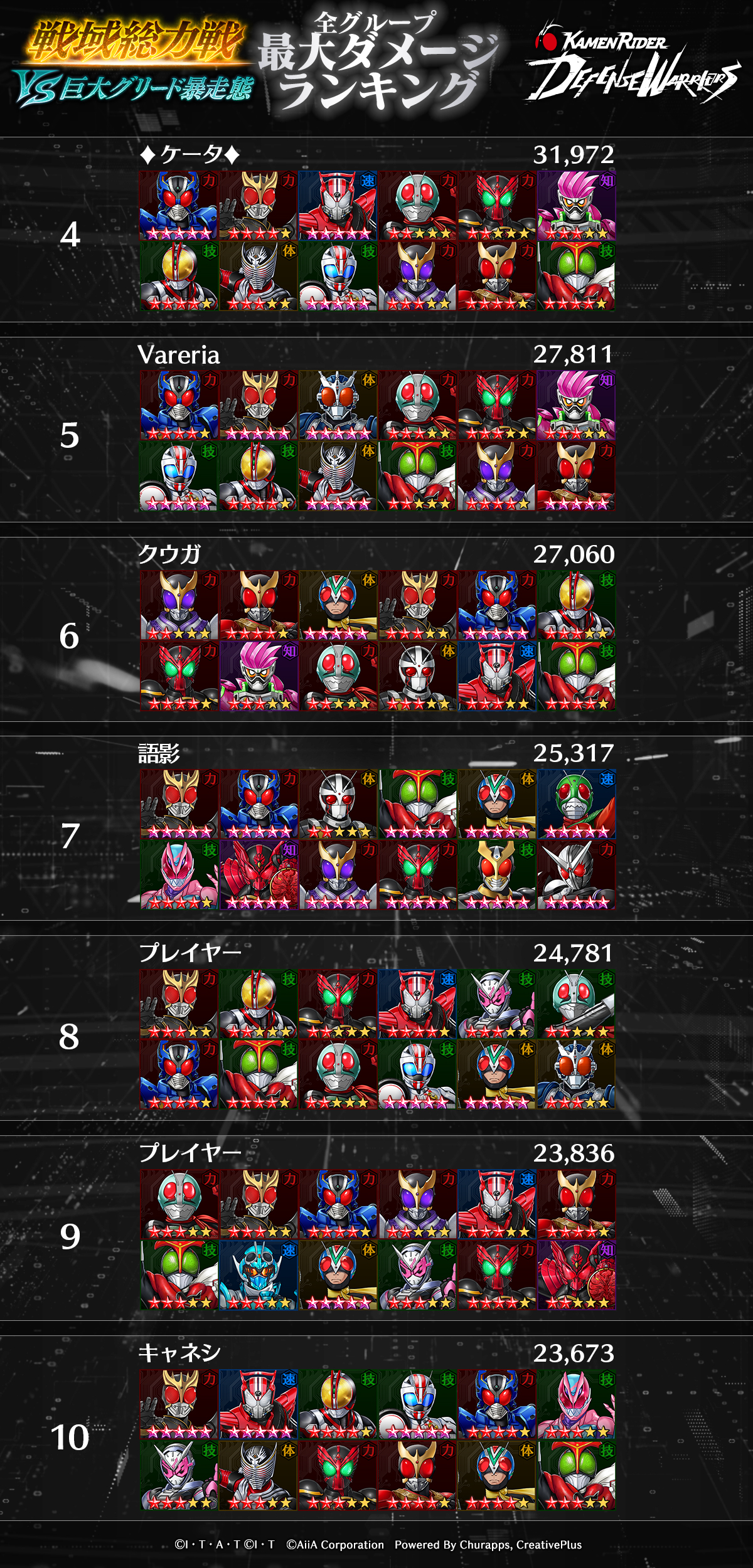 ランキングバトル「戦域総力戦 VS巨大グリード暴走態」結果発表