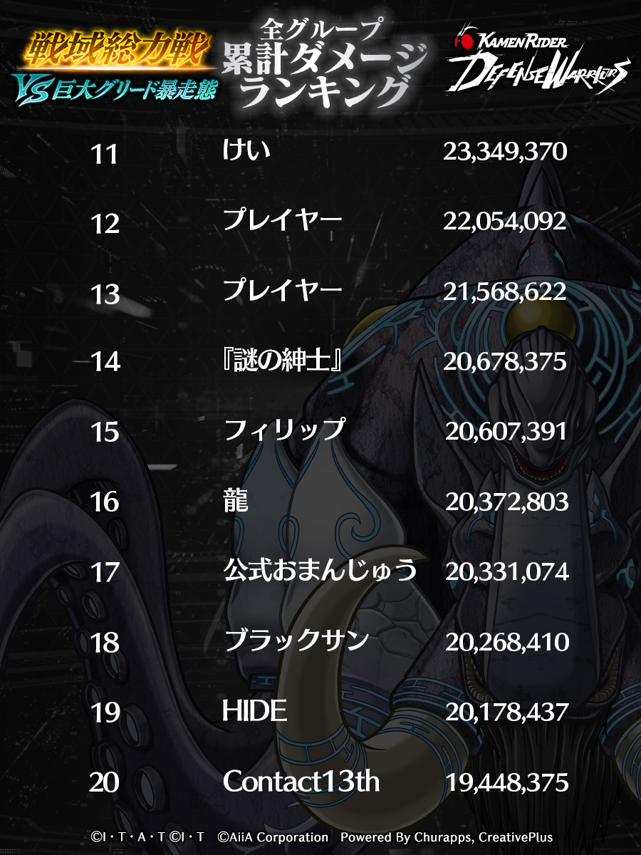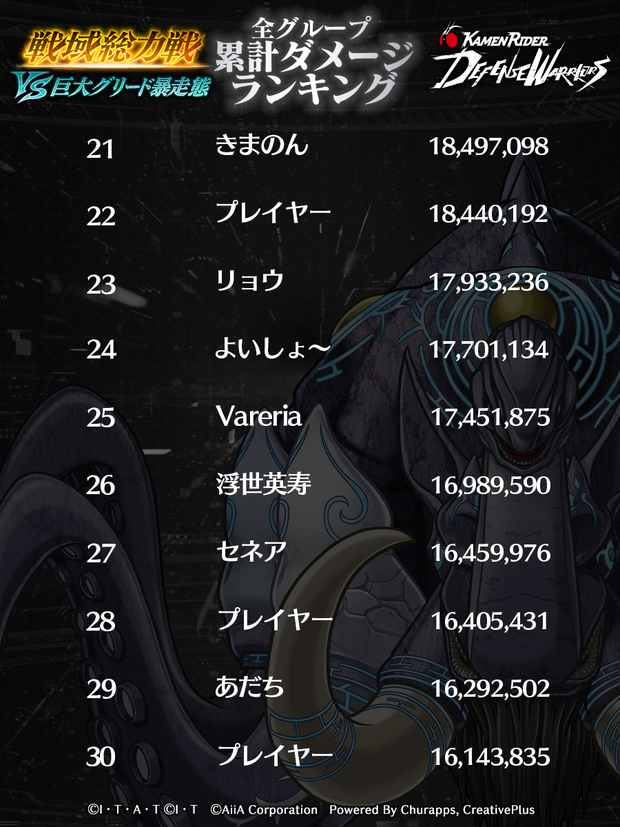 全グループでの累計ダメージポイントTOP30のユーザー名/ダメージポイントをご紹介!