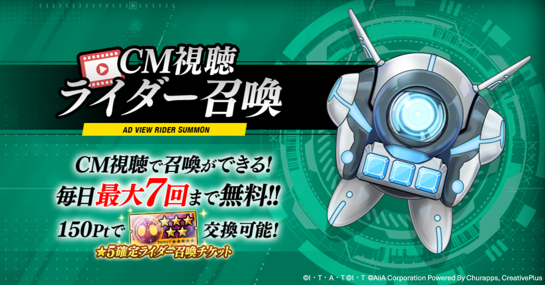 4月24日(金) 4:00より、無料でできる「CM視聴ライダー召喚」が超パワーアップ!