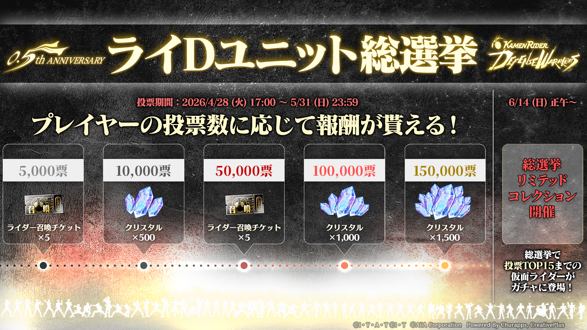 また、投票数に応じてユーザーの皆様にクリスタル最大3,000個などのゲーム内アイテムもプレゼント!